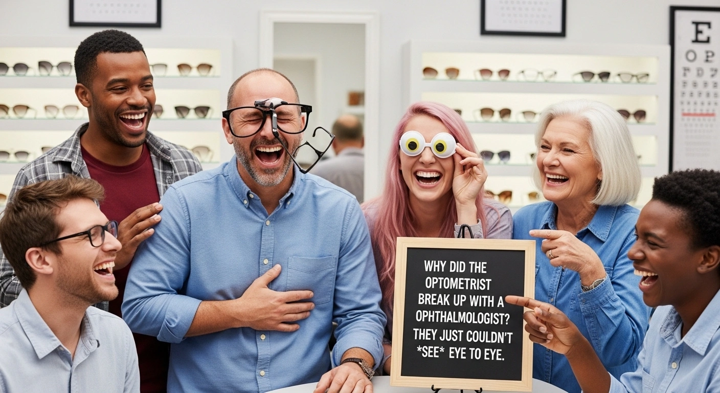 Vision care can be serious, but eyeglass jokes help lighten the mood. They bring humor to eye exams and prescription updates.